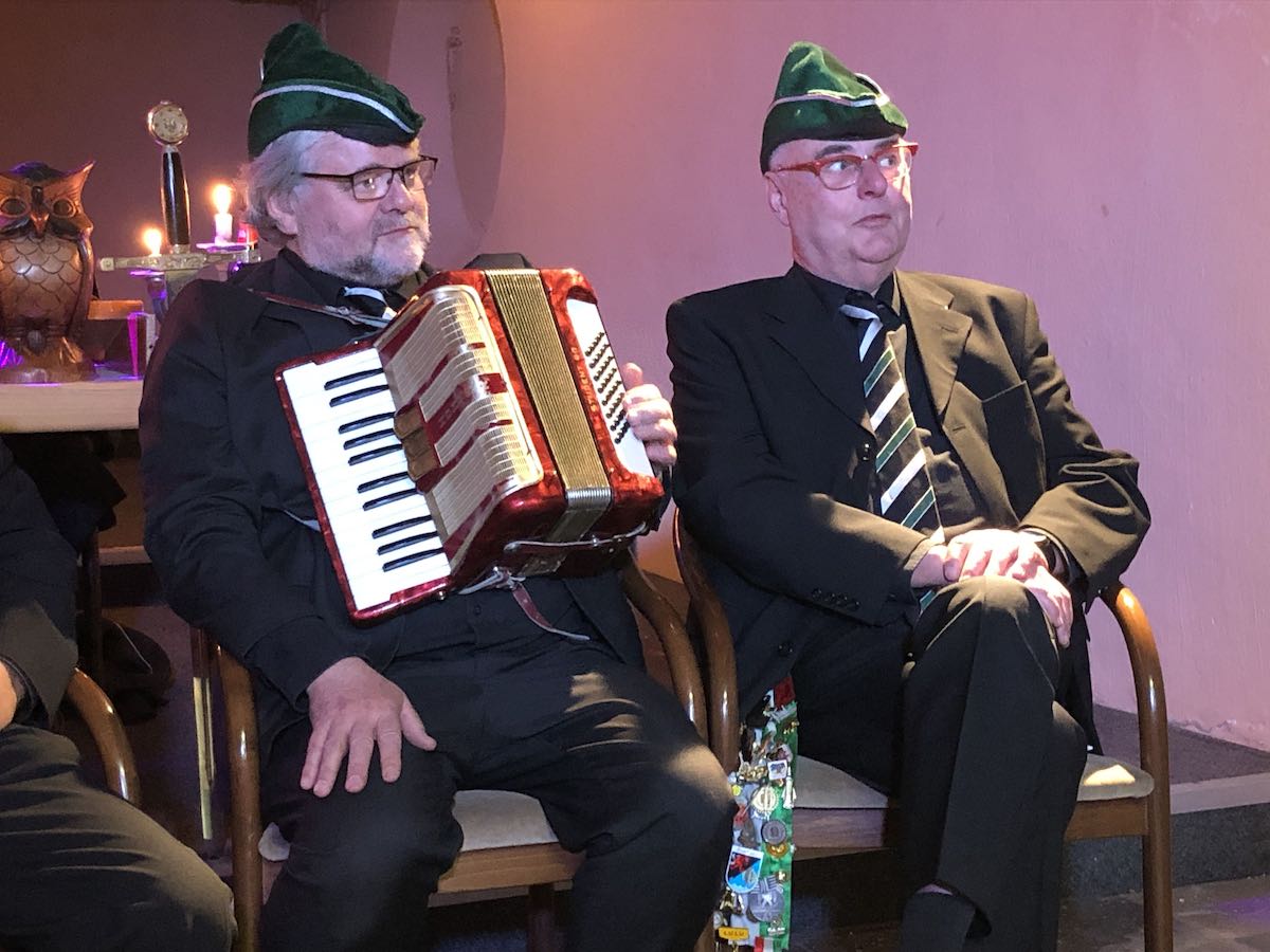 Mit einem lockeren Fechsungsreigen ging die zweite Sippung in unserer etwas schmucklosen Notburg zu Ende. Den Schlusspunkt setzte mal wieder der Auftritt der Tonsassen in der Besetzung Junker Klaus, Pilger Müsseler (Burgknäblein von Junker Klaus) und Junker Ludwig, der sich mit dem Liedulein "Ich bin der Nummernboy" endgültig von seinem Knappen-Nummern-Dasein verabschiedete.