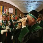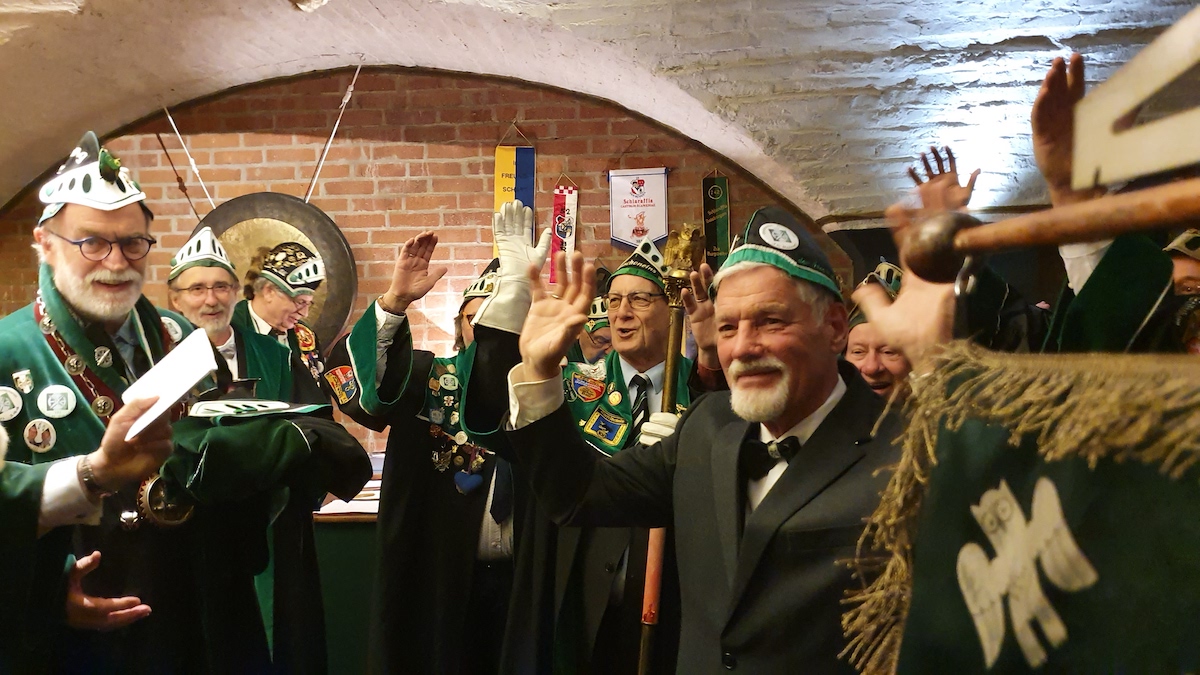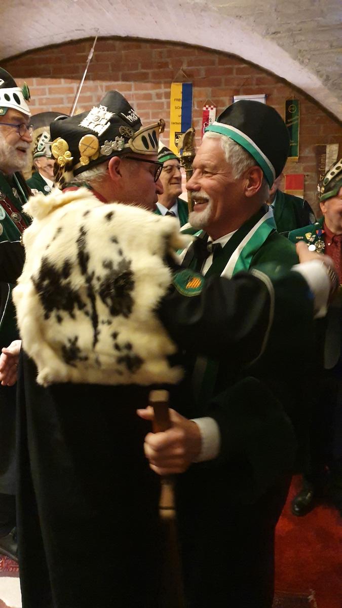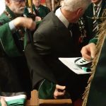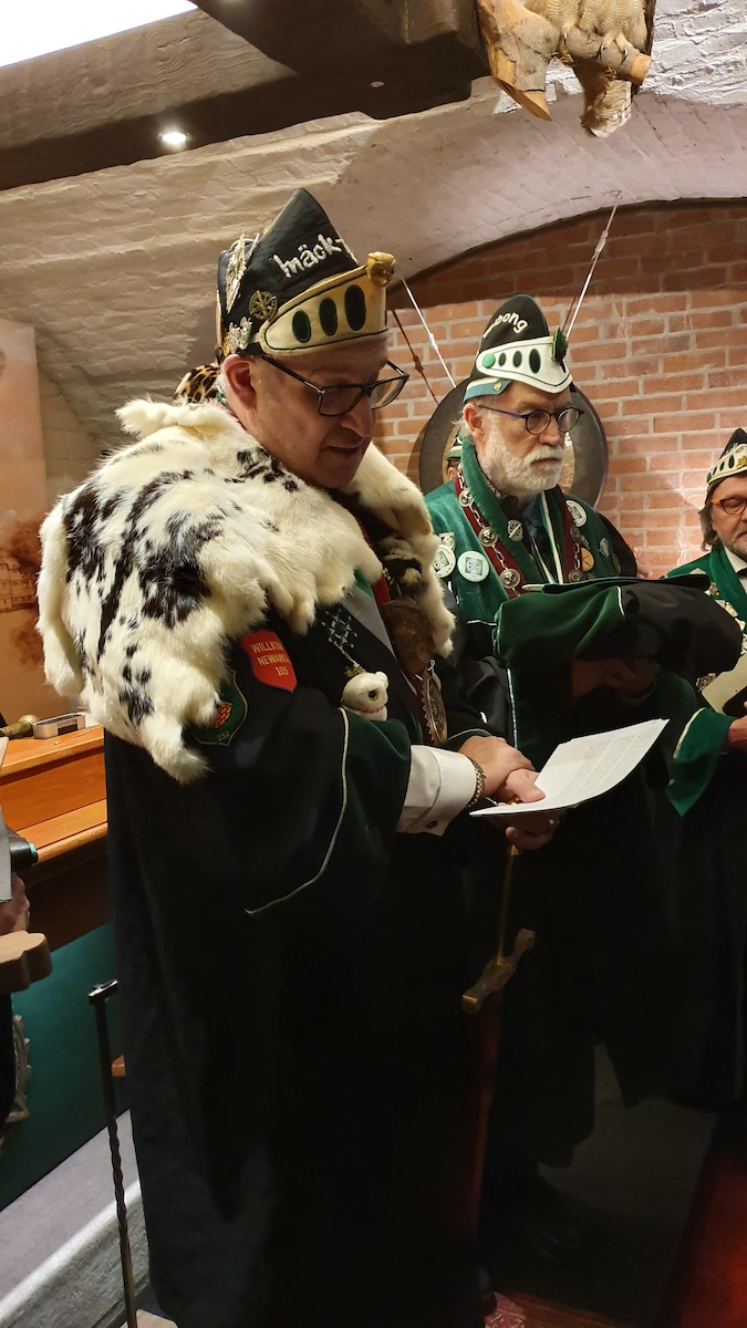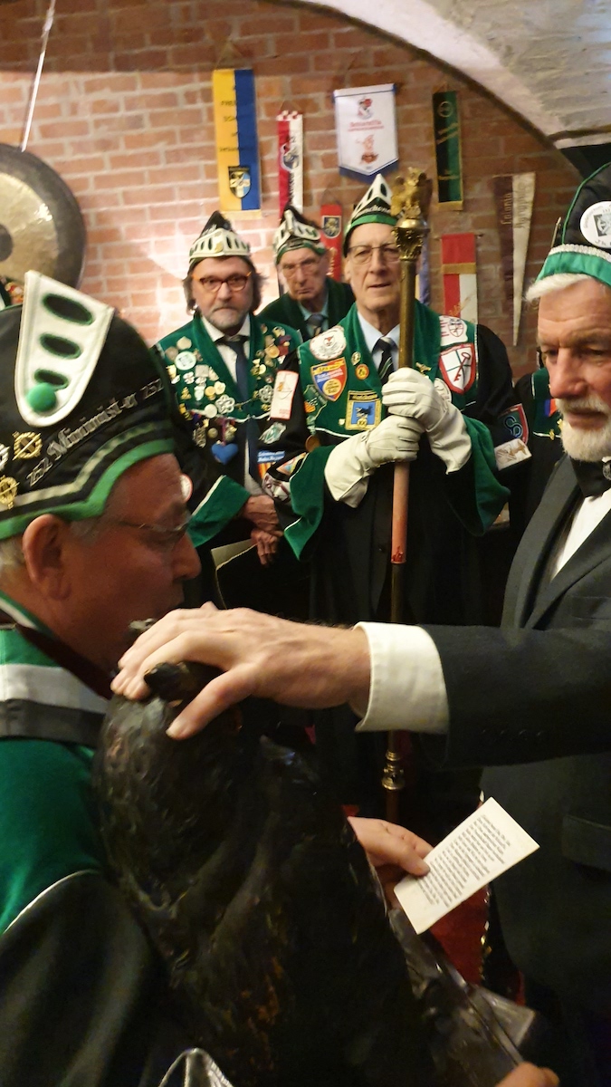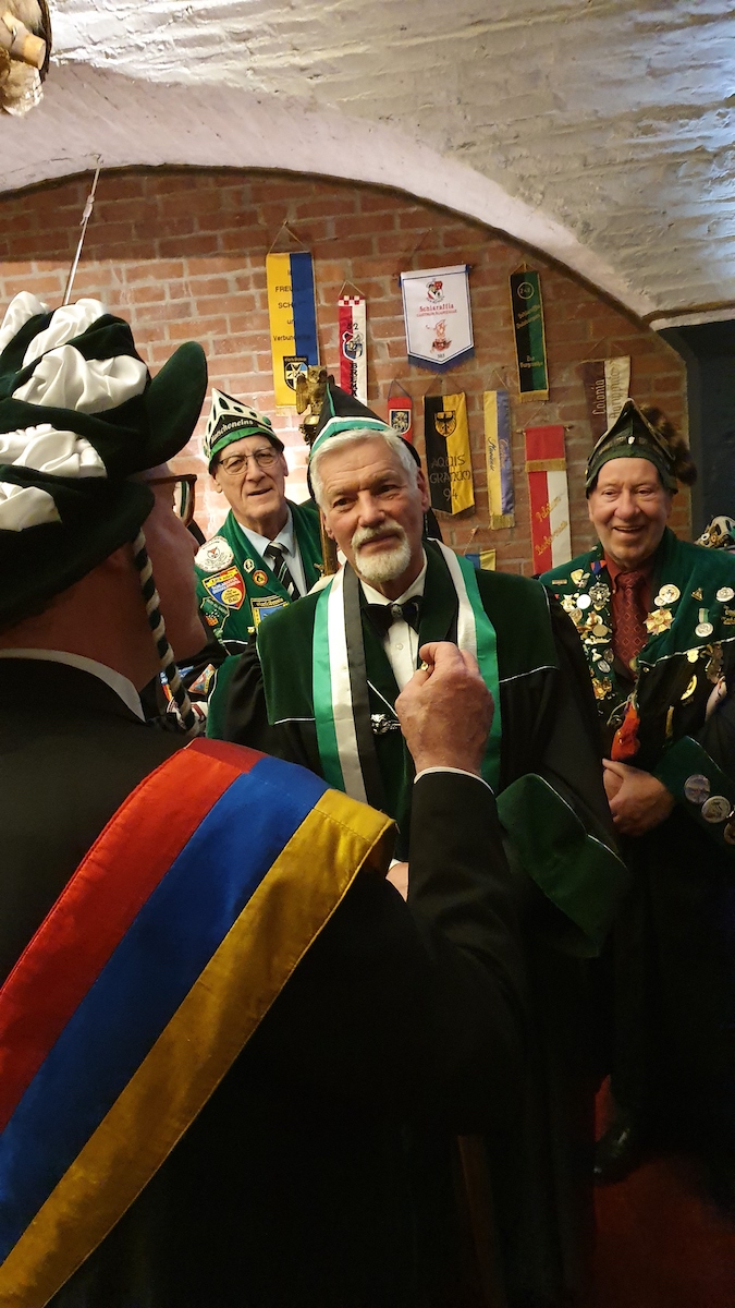 Am 30. im Eismond a.U. 161 war es dann soweit, unser Jk Rainer wurde mit allem Pomp und Ceremoniale feyerlich in den Ritterstand erhoben. 48 Sassen bildeten einen farbenprächtigen Rahmen für diesen Ritterschlag, dem ein gar exzellentes Liebesmahl vorweg ging und eine feucht fröhliche Kristalline nachfolgte.